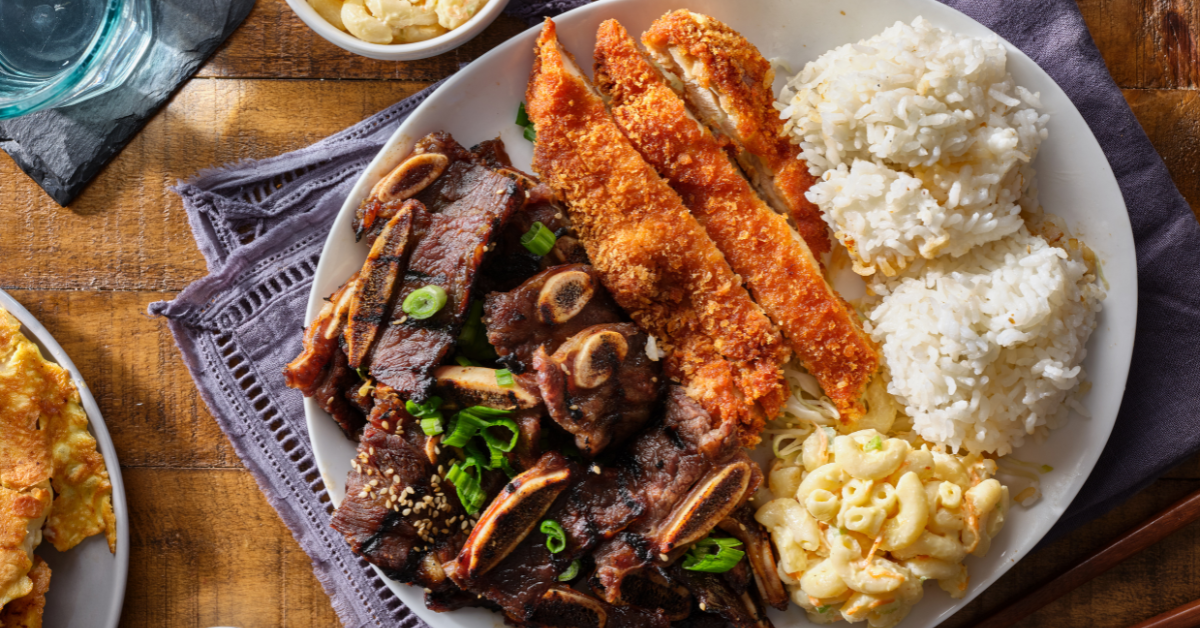 Fresh Pineapple-Baked Chicken Served With A Teriyaki Glaze and Sweet Kalua Pork Polynesian Rice Steamed Vegetables Fresh Island Fruits In Season Mango, Guava, Pineapple, Watermelon, and Papaya Tropical Colored Chips and Mango Salsa (Authentic Food By Request, Such As Taro, Lu Pulu, Haupia, Etc.)