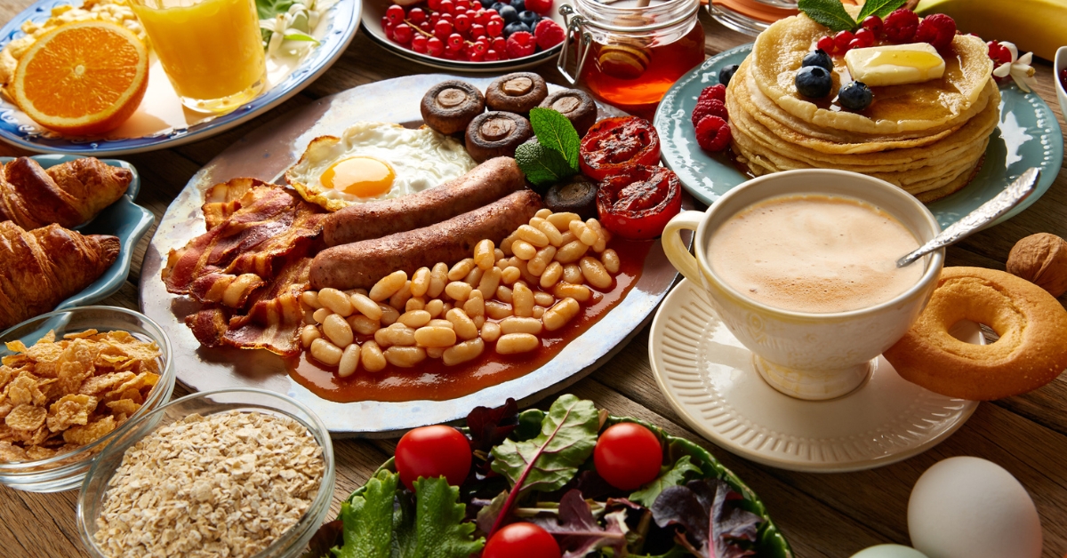 Scrambled Eggs, Sausage and Bacon, Hash Browns, Fresh Fruits, Croissants, Bagels Orange, Cranberry, and Apple Juices These items may be added to any breakfast buffet for a nominal charge: Pancake, Waffle, or French Toast Bar Crêpes Bar Oatmeal Bar Omelet station Yogurt, Berry, and Granola Parfait Regular Coffee, Decaf, and Hot Tea