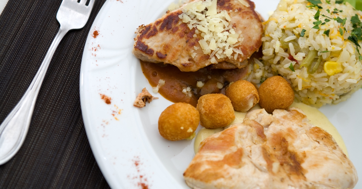 Boneless Breast Of Oven Roasted Chicken Choice Of Three Sauces– Marinara, Barbecue, Teriyaki, Alfredo, Mushroom Marsala, Wine, Sweet and Sour Green Beans Almondine Oven-Roasted Herbed Potatoes Spring Mix Salad With Raspberry Vinaigrette Rolls and Butter