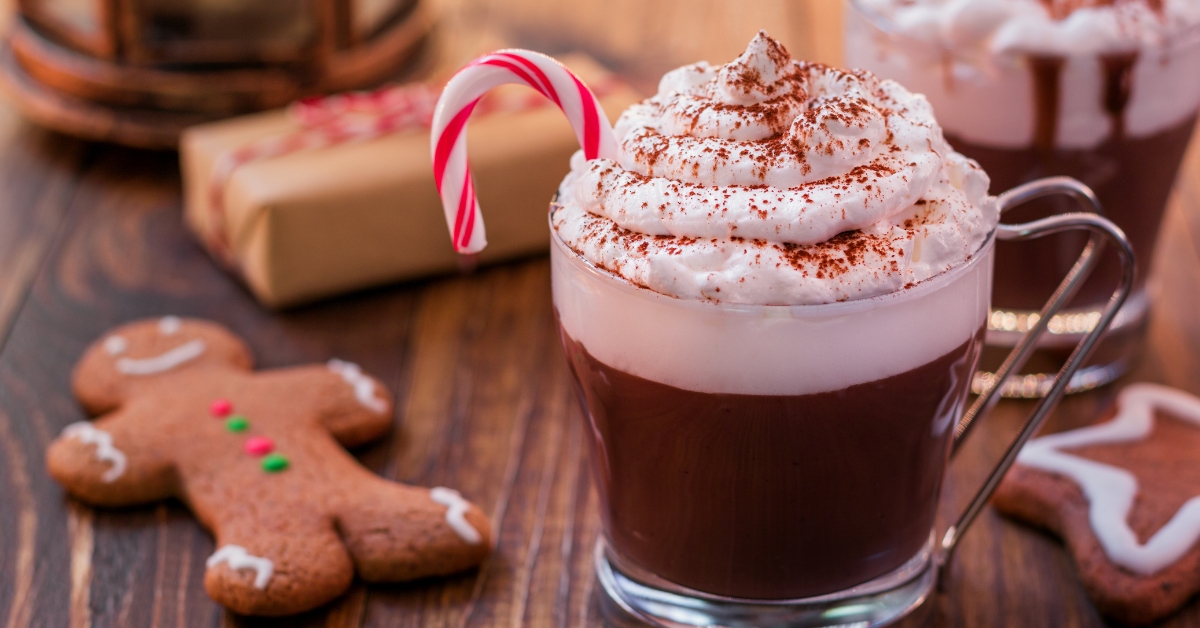 Hot Chocolate and Spiced Cider or Wassail with Whipped Cream, Assorted Flavorings, Marshmallows, Cinnamon, and Nutmeg
